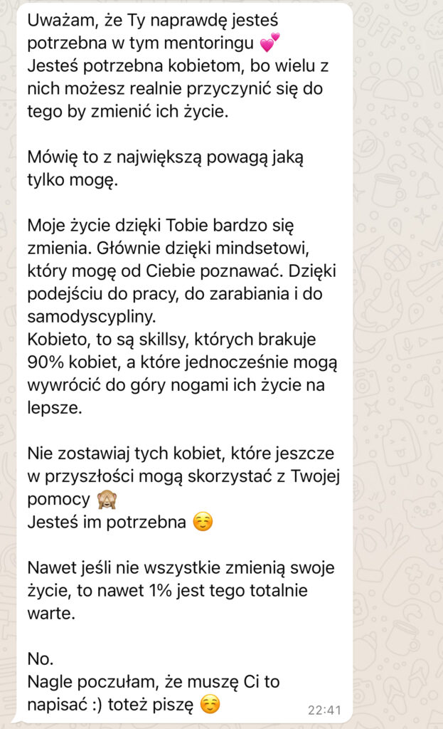 “Współpraca z Agnieszką dała mi więcej niż wiedzę – pozwoliła mi zobaczyć, że mogę zarabiać na tym, co kocham, bez kompromisów.” – Marta