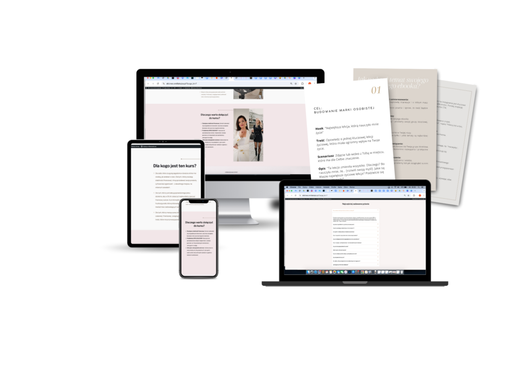E-Biznes to praktyczny kurs, pełen konkretnych wskazówek, gotowych szablonów, strategii i zadań do wdrożenia. Wszystko po to, abyś mogła natychmiast stosować zdobytą wiedzę w swoim biznesie.