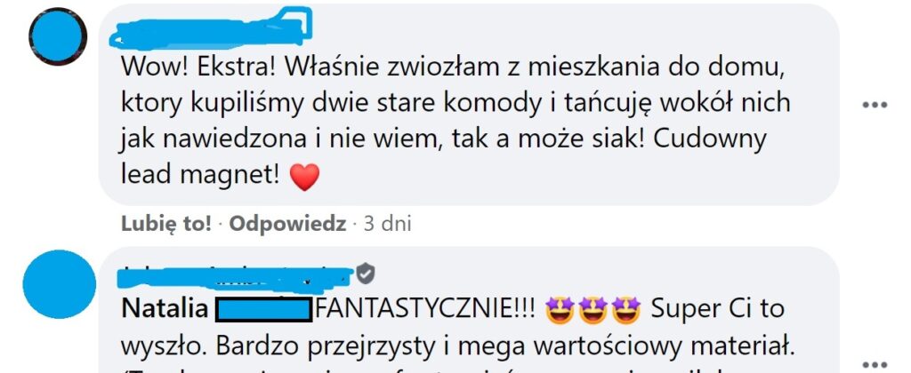 „Dzięki zastosowaniu wskazówek Agnieszki sprzedaż moich produktów wzrosła, a ja w końcu widzę efekty swojej pracy. Polecam każdemu!” – Natalia