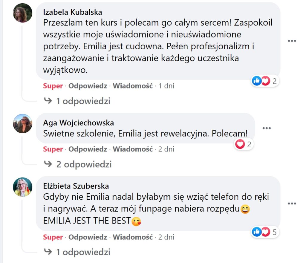 „Kurs Emilii to dla mnie przełom. Moje przychody zaczęły rosnąć, a ja zyskałam pewność siebie, i poczucie że jestem na dobrej drodze.” – Anna