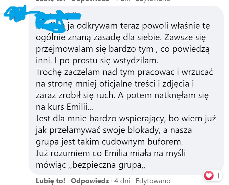 „Praca nad swoimi blokadami u Emilii to coś więcej niż kurs – to wsparcie, wiedza i pewność, które pozwalają mi z dumą prowadzić biznes.” – Ewa